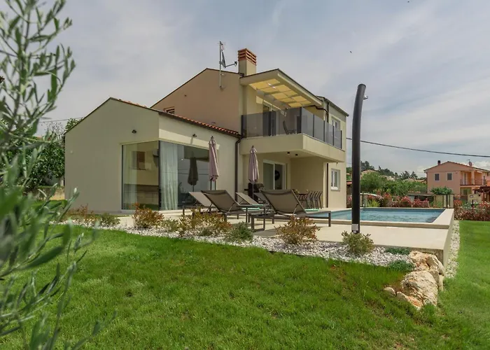 Vila Villa Nika In Markovac - Haus Fuer 6 Personen Višnjan je umístěna 2 km od Lavanda Deklevi, je 3-ložnicové ubytování s terasou. Zahrnuje kompletní kuchyni a 3 koupelen.
